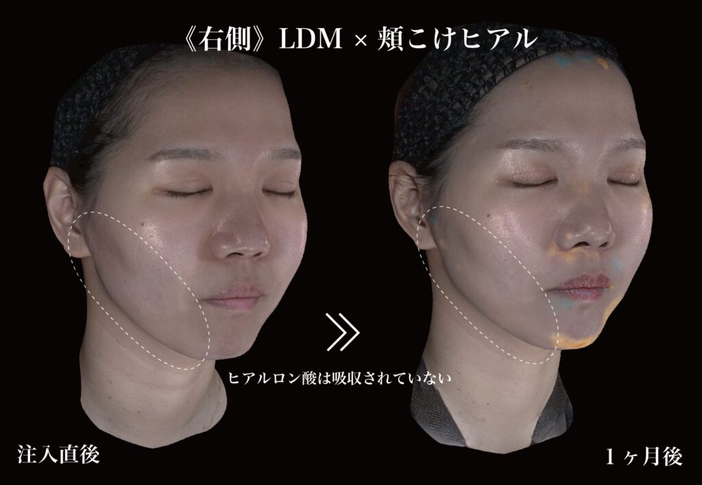 カスタマイズヒアルの前に、LDM KIDAプログラムを右側のみ行い、その後ヒアルロン酸注入を行った。
