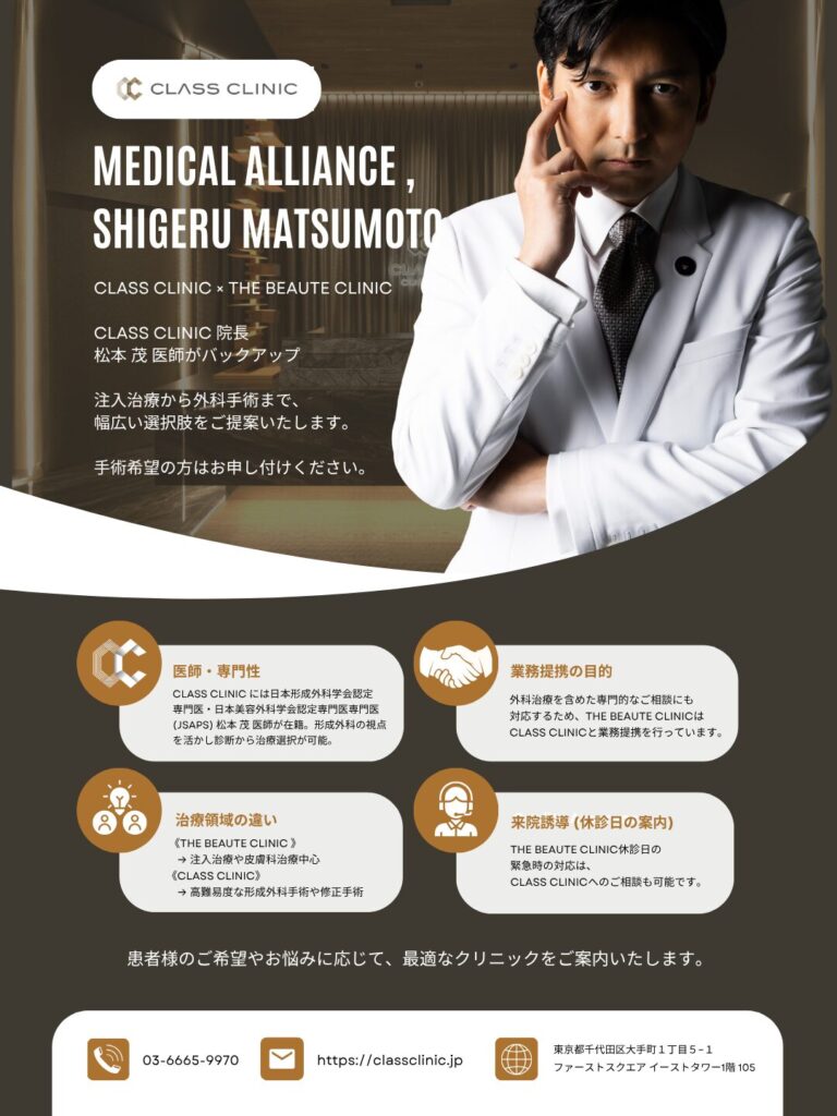 この度、THE BEAUTE CLINICは、CLASS CLINICとの業務提携を開始いたしました。